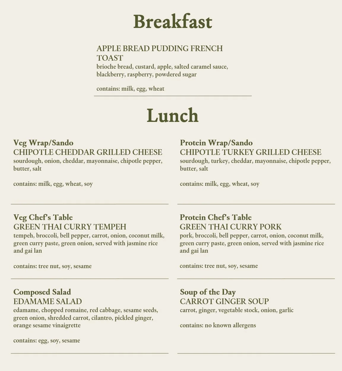 Menus are carefully designed with intention, balancing comfort, flavor, and seasonality to elevate everyday dining.